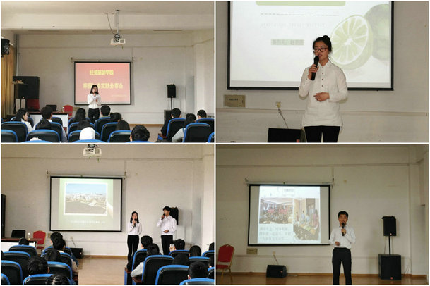 分享会上,学生纷纷表示自己在经历了一个寒假之后收获满满,并讲述了自己在社会实践中的经历及自身的感受。同学们结合自身专业性质和自己的兴趣特长,开展了内容丰富、形式多样的社会实践活动。有去敬老院参加志愿服务,有结合自身专业去酒店提前模拟职业角色,有组队去高中母校展开问卷调研,并向学弟学妹介绍自己的大学,助力宣传申博的办学特色和优势所在,客串了一回学校招生志愿宣传员。不管是参与何种社会实践活动,同学们都切身体会到了生活的不易以及亲自实践的重要性。