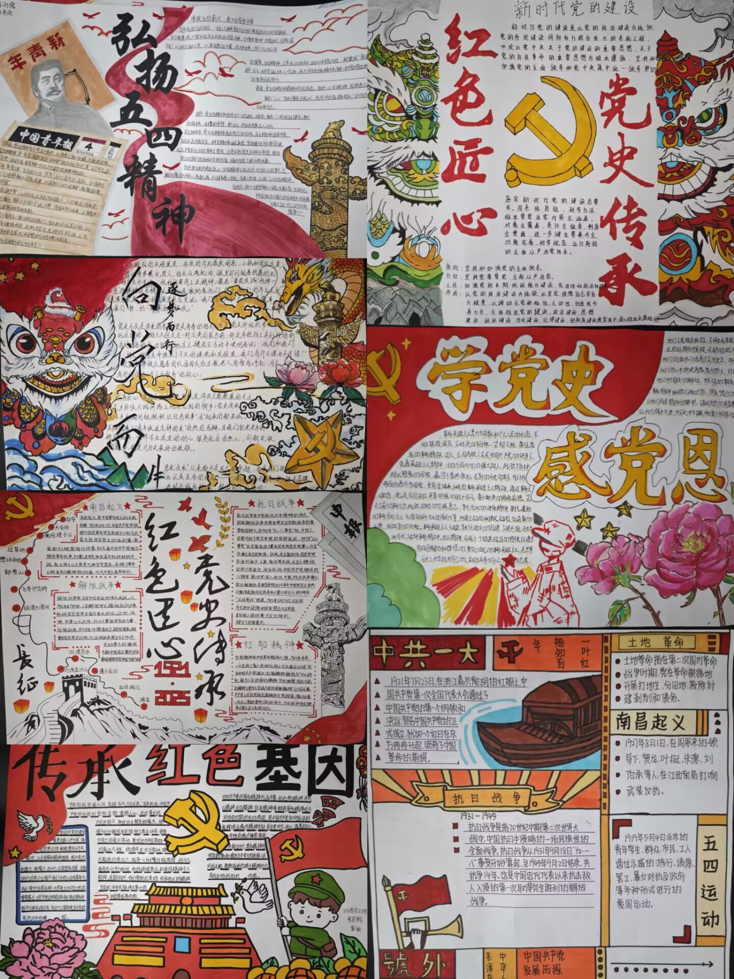 活动启动后,入党积极分子们积极响应,纷纷投入到手抄报的创作中。他们以党的历史发展为主线,精心设计、用心绘制,通过生动的图片和文字,展现了中国共产党在不同历史阶段的使命担当和卓越成就;在创作过程中,入党积极分子们充分发挥自己的想象力和创造力,运用多种绘画技巧和表现形式,查阅大量党史资料,深入挖掘红色故事,力求将党史知识准确、生动地呈现出来。精心的版面设计,彩鲜艳的图案和文字,使手抄报不仅具有教育意义,更成为了一件件精美的艺术作品。
