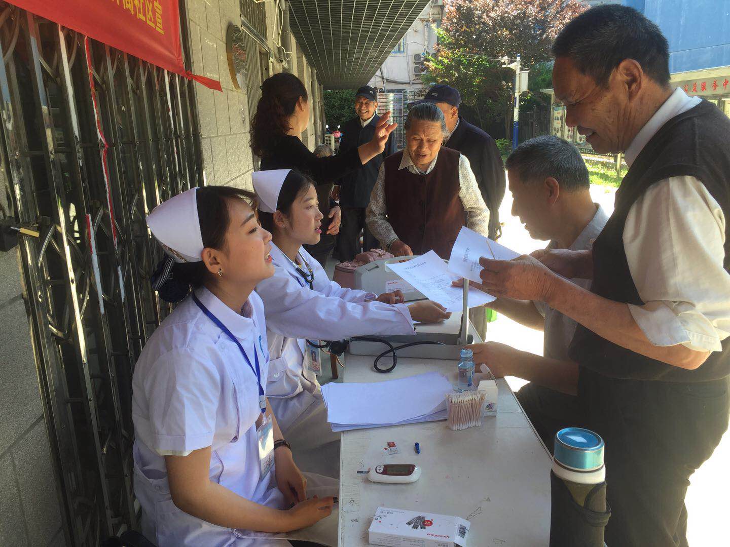 活动现场,人潮涌动,志愿者忙前忙后张罗着,热情接待每一位居民。青年志愿者充分发挥自己的专业知识和技能,为社区居民提供健康教育手册、免费测血糖、血压等便民志愿服务活动。
