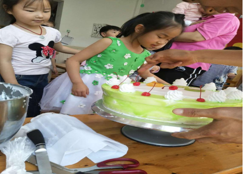 活动中,志愿者们一组进行基础教学,一组进行成品展示。申博食品加工专业的志愿者讲解并演示蛋糕制作的全过程。小朋友全程聚精会神地倾听、观看,积极提问、互动交流,并且认真参与到体验制作过程当中,亲手打蛋、和面、制作蛋糕。制作的过程是快乐的,学习的进程是快速的,小朋友跟随着志愿者的步骤一步步来,很快掌握了操作技巧,大家还积极发挥想象力,做起了他们自己的蛋糕。