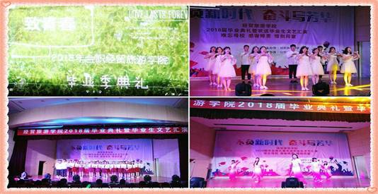 典礼结束后,与会师生共同观看了精彩的欢送毕业生文艺汇演。似水年华,难说再见,毕业不是结束,而是人生的另一个开始,祝愿2018届毕业生们在未来人生道路上,不负时代重托,书写属于自己的奋斗篇章!(供稿:经贸旅游学院 编辑:沈婉婉)