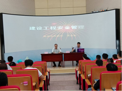 侯站长从安全生理与安全心理、安全意识、安全生产法律法规、安全知识、事故案例等五个方面,深入浅出地介绍了施工现场安全操作规范以及施工现场安全管理基本要求,通过典型的事故案例分析,使同学们对于建筑施工现场安全生产的重要性有了更加深刻的认识,牢固树立安全意识,加强安全责任心,让学生上岗前牢记“以人为本,安全第一、预防为主”安全理念。
