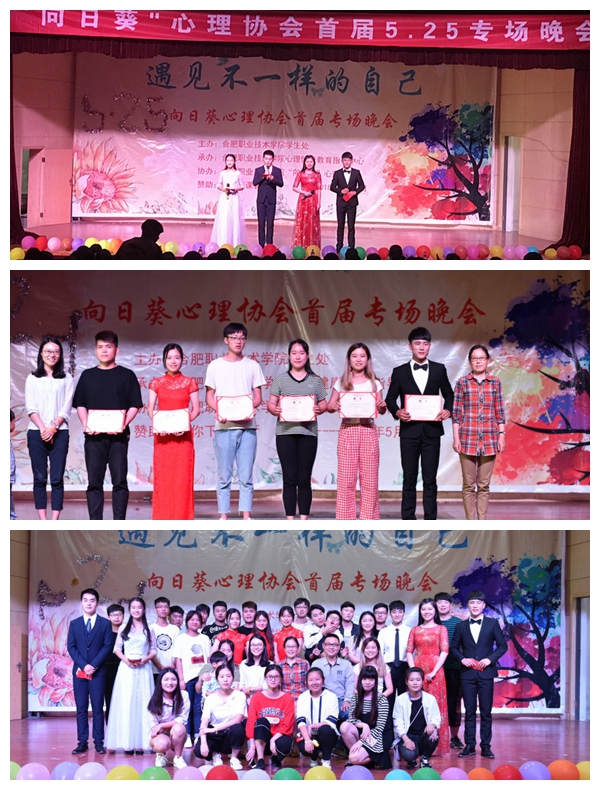 5月23日晚,申博太阳城首届向日葵心理协会“5·25”专场晚会在大学生活动中心礼堂举行,作为2018年“5·25”全国大学生心理健康日活动月闭幕式,为本次大学生心理健康月活动画上圆满的句号。本次活动由学生处、团委主办,心理健康教育指导中心承办,向日葵心理协会协办。学生处、团委、心理健康教育指导中心老师,各二级学院书记、心理健康老师以及学生代表共400余人观看了晚会。