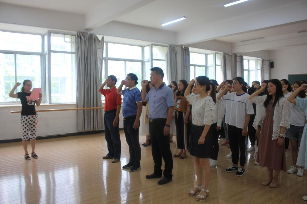为进一步增强新老党员党性修养和政治责任意识,铭记历史、继承传统,筑牢初心、奋勇前行, 6月5日,护理学院学生党支部在医学北楼大会议室举行新党员入党宣誓暨老党员重温入党誓词仪式。学院2018年新吸收的55名预备党员和学生党支部党员参加了宣誓仪式,仪式由党总支副书记邹华兵主持。