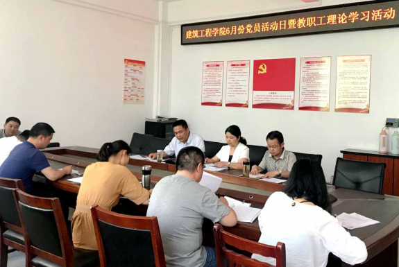 6月12日下午4:10在院208会议室,建筑工程学院党总支按照校组织部下发的通知要求,主要围绕《中共教育部党组关于高校党组织“对标争先”建设计划和实施意见》和《中共教育部党组关于高校教师党支部书记“双带头人”培育工程的实施意见》文件精神为主题,组织开展教职工、党员集中学习等活动,活动由李红雨同志主持。