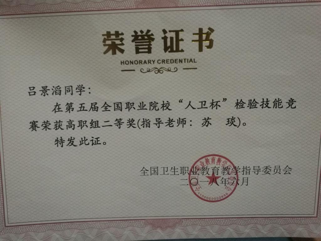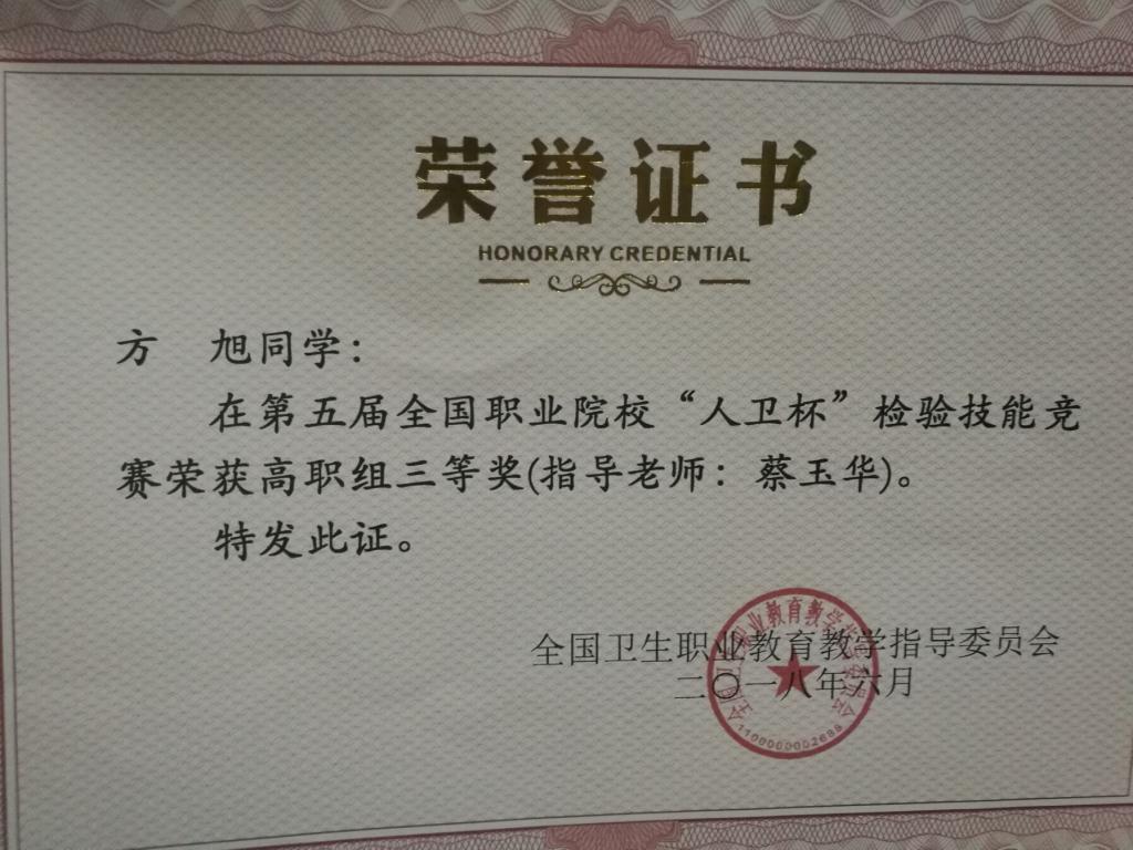 本次竞赛有来自全国各地的110所高(中)职院校派出的120支代表队,361名选手参加,规模空前。其中高职组比赛共四个项目:白细胞计数及临床应用;细菌分离技术、革兰染色法及细菌鉴定思路;血糖测定及临床应用;形态学检验项目。经过三天的激烈角逐,申博在91个高职代表队中位列第33名,获团体三等奖。另外吕景滔同学获个人综合二等奖;方旭同学获得个人综合三等奖。