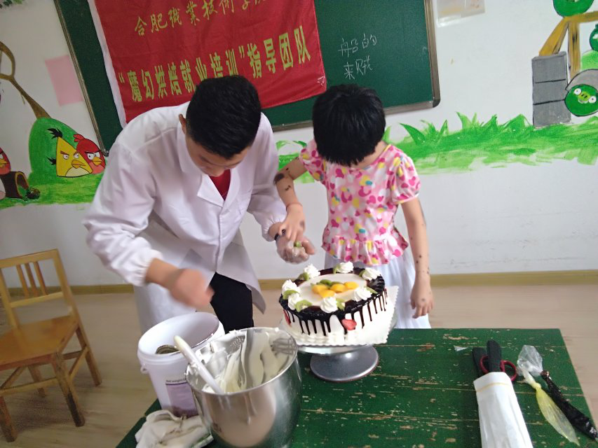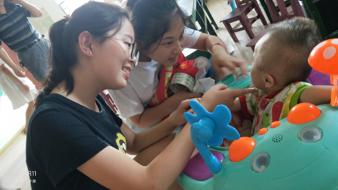 活动内容主要有:志愿者将提前准备好的蛋挞、饼干分发给小朋友;团队负责人杨贤豹现场为孩子们做蛋糕,并进行互动;志愿者和孩子一起手牵手聊天、玩游戏、读书认字......在吴院长和福利院老师的全力配合以及孩子们的积极参与下,活动开展顺利。在此次活动中,志愿者们也学到许多技术和本领,如蛋糕是如何制作的,如何走进残疾儿童的内心世界,如何提高交际能力等等,真正体会到暑期“三下乡”社会实践活动的精神内涵和志愿者服务理念。